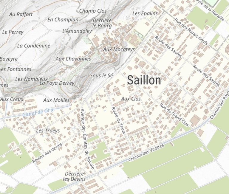 Vous avez à votre disposition le cadastre du Valais SIT (Système d’Information du Territoire). Cet outil interactif permet de visualiser les données géographiques de Saillon en temps réel.